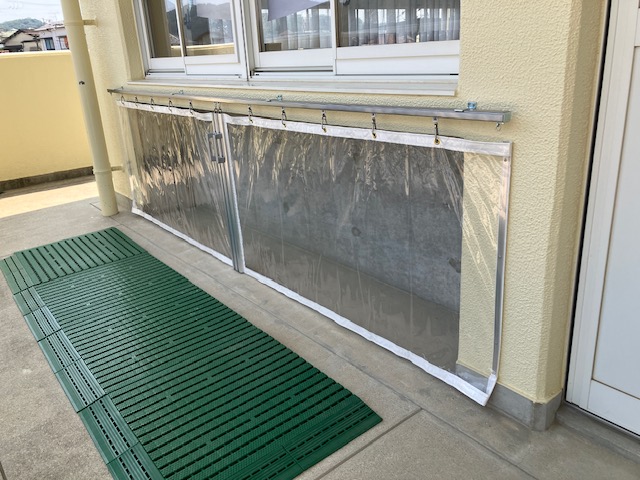 神戸の保育園様にて、子供用の下駄箱前にビニールカーテンを4台設置させて頂きました。