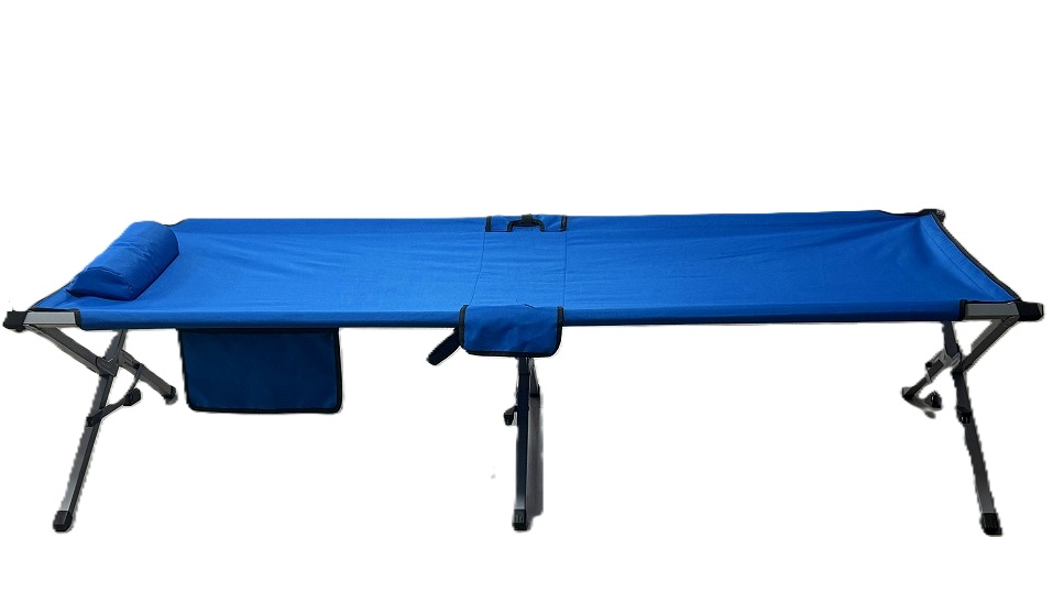 納入したベッドは、レバーロック式で組み立てが簡単。しっかりした耐荷重300kgの設計ながら、収納時はコンパクトにたためるため、限られた倉庫スペースでも効率よく保管できます。