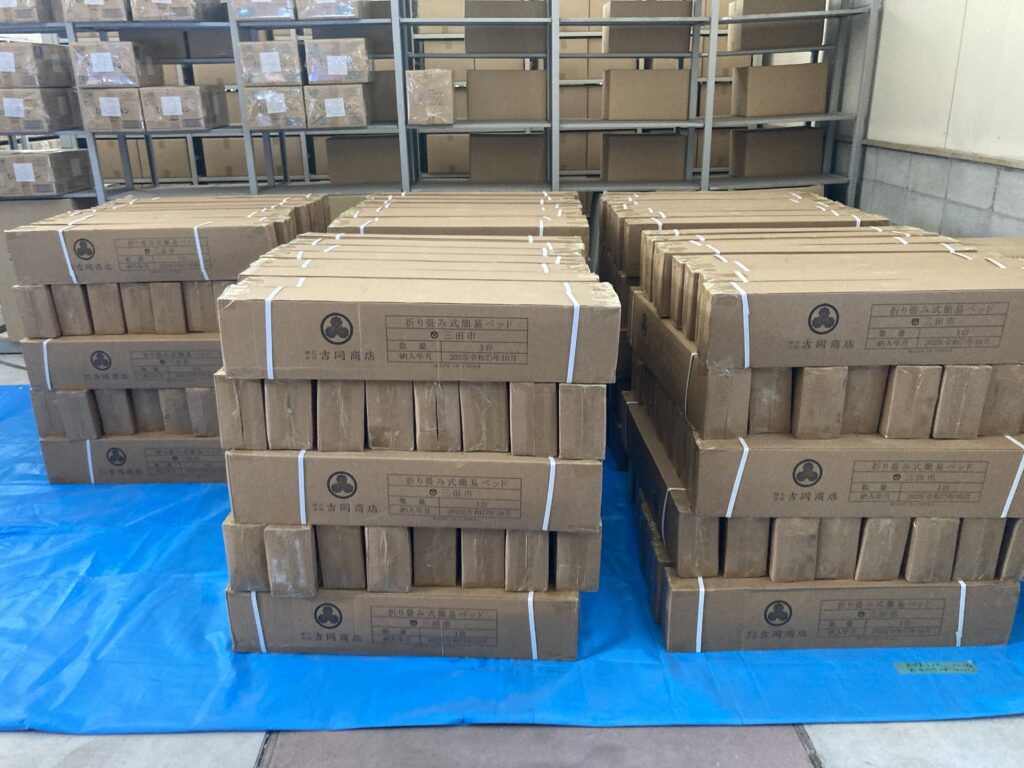 近年、地震や豪雨などの災害が増える中、避難所での生活環境を少しでも快適にするための備蓄品整備が進められています。今回の簡易ベッドもその一環として導入されたもので、避難される方々が安心して休める環境づくりのお手伝いができたことをうれしく思います。