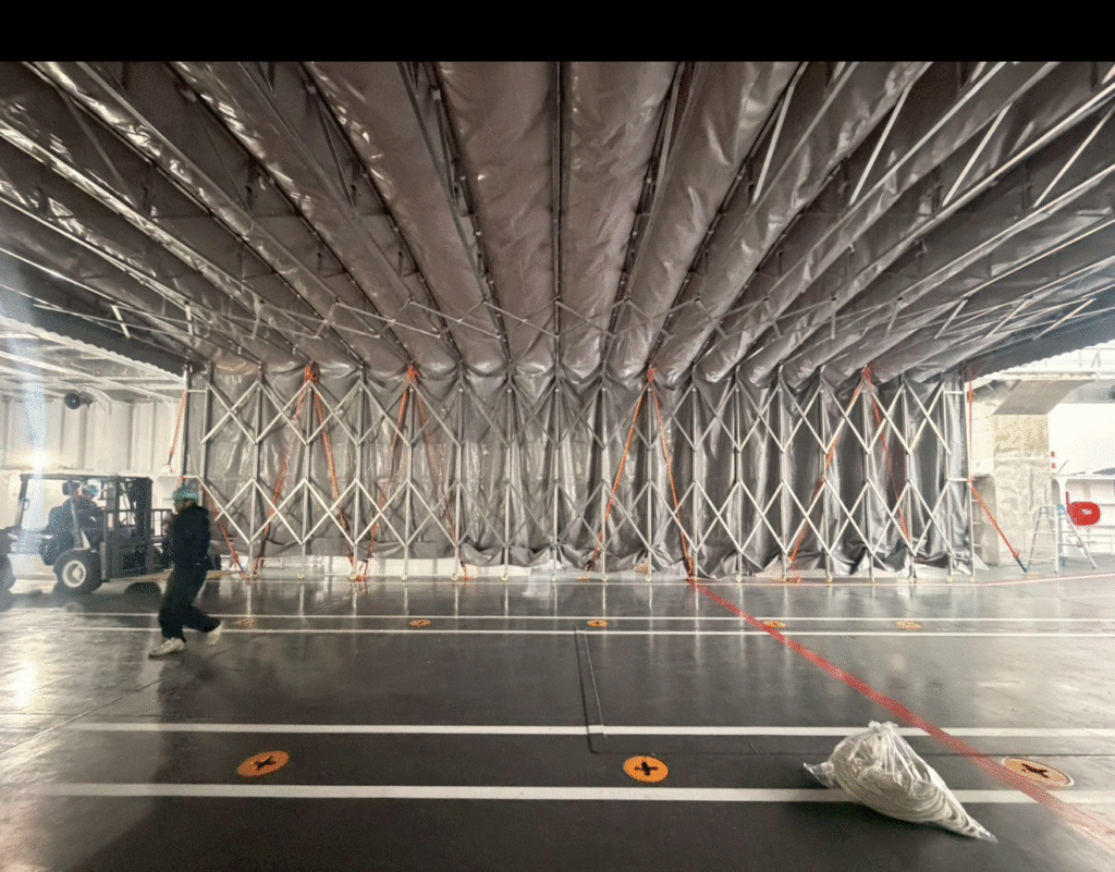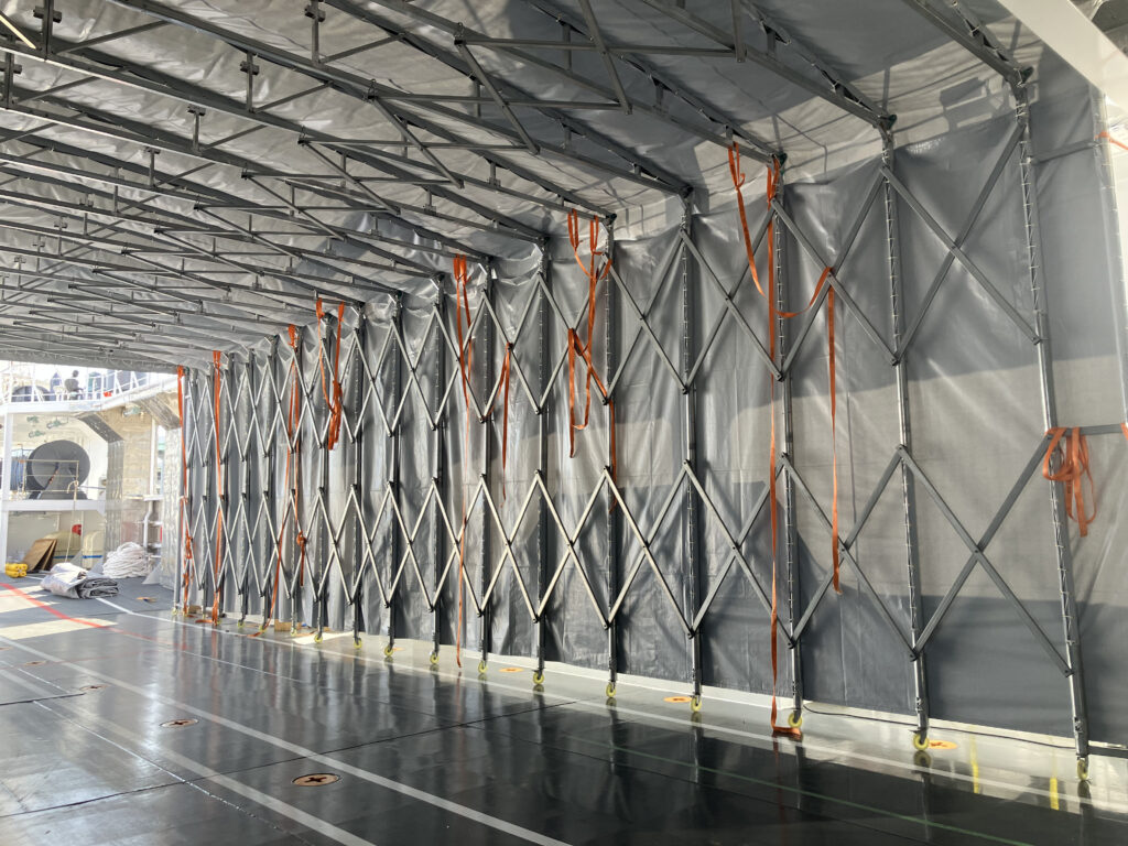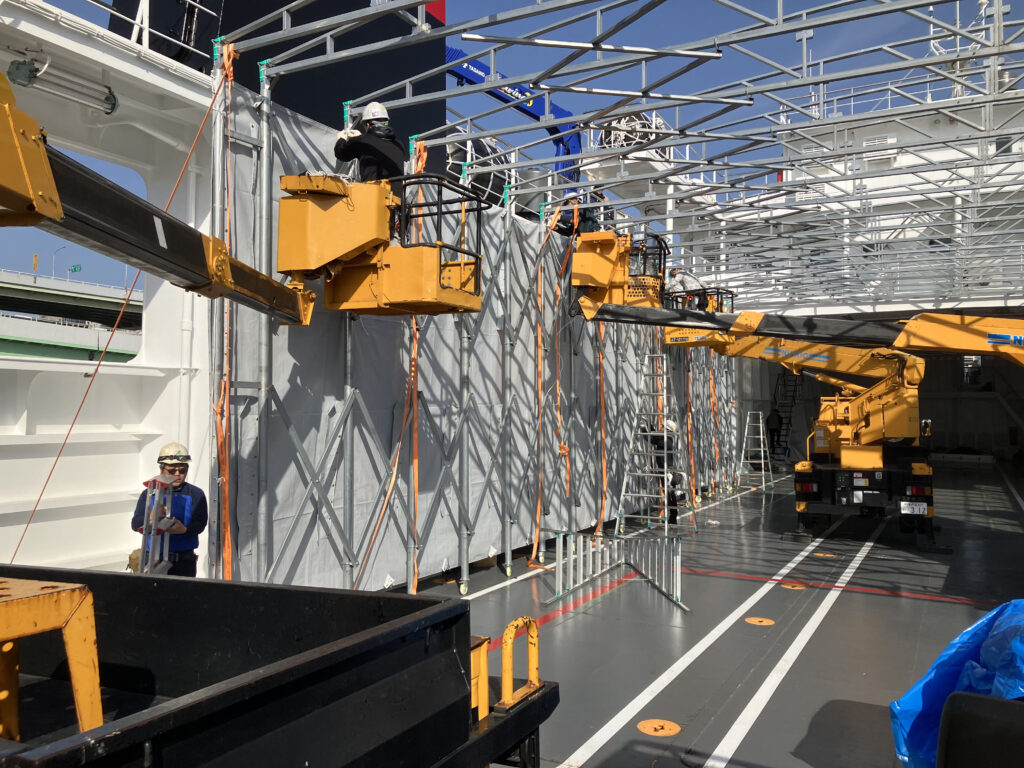 HPをご覧頂いたお客様より、船上に設置された大型の可動式テントの張替工事をご注文頂きました。